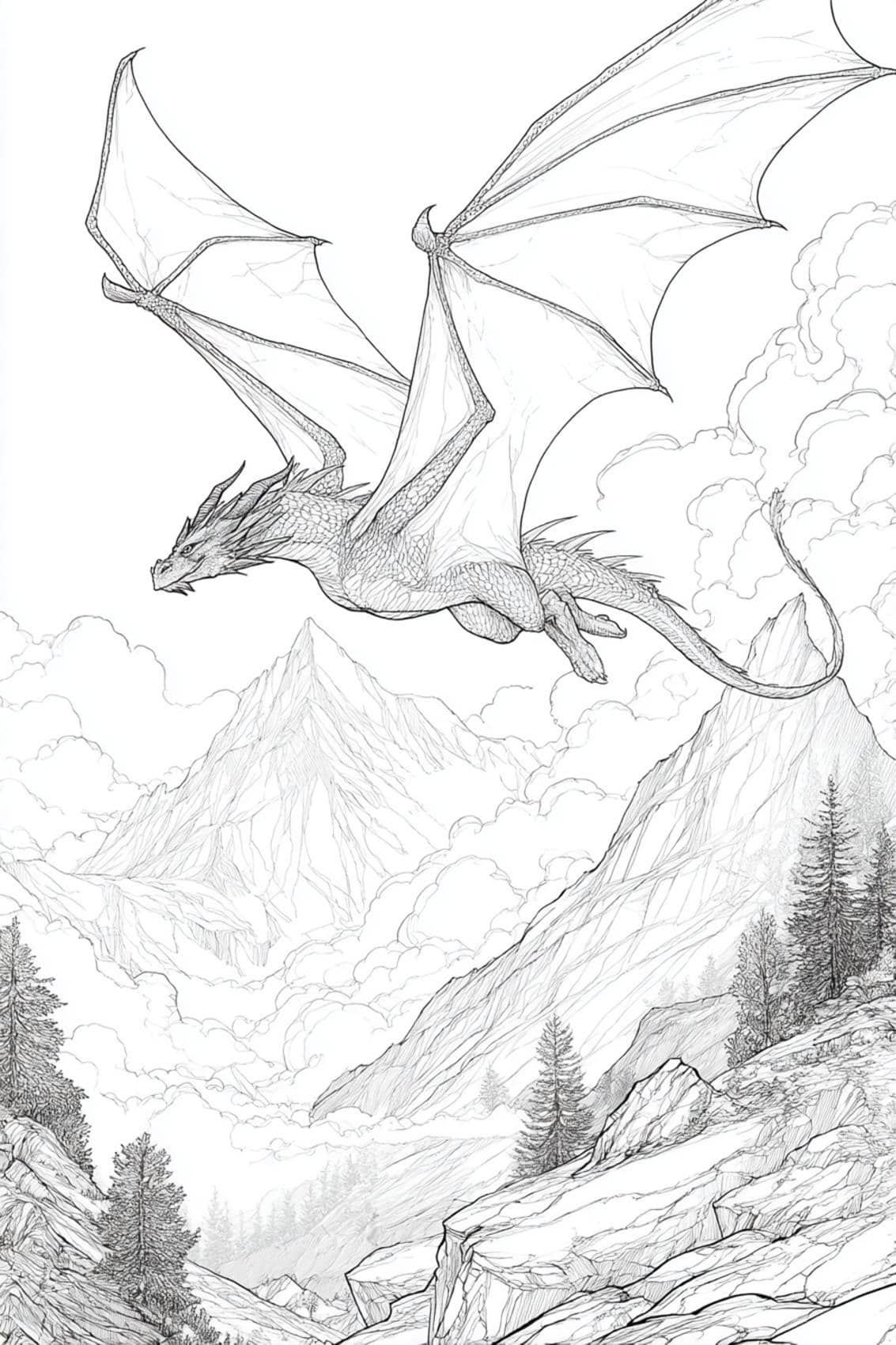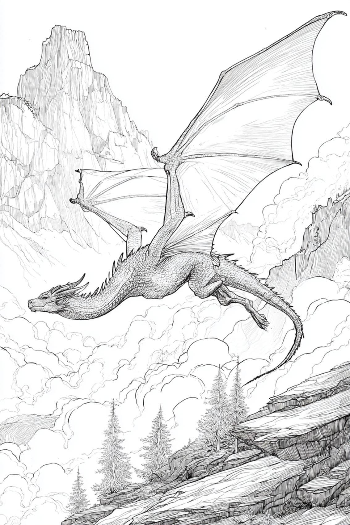 If you’re craving a sense of adventure, these coloring pages feature a breathtaking dragon perched high above the world.
