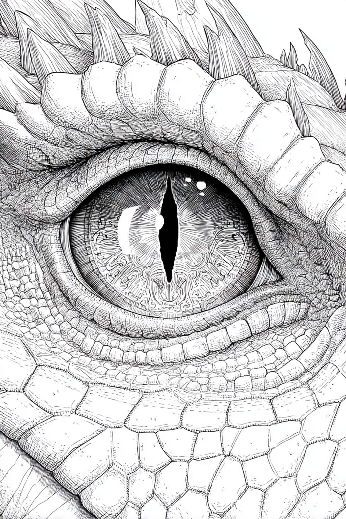 In this striking close-up, you’re invited to meet a dragon not through its roar or its wings, but through its eye — a window into centuries of memory, power, and hidden emotion. The swirling patterns around the eye hint at ancient magic, deep intelligence, and the untold stories carried within a creature older than empires. As you color, you can bring out fiery reflections, subtle textures, or shimmering scales, creating a moment suspended between awe and intimacy. This page is perfect for anyone who loves dramatic details and the quiet tension of standing face-to-face with legend.