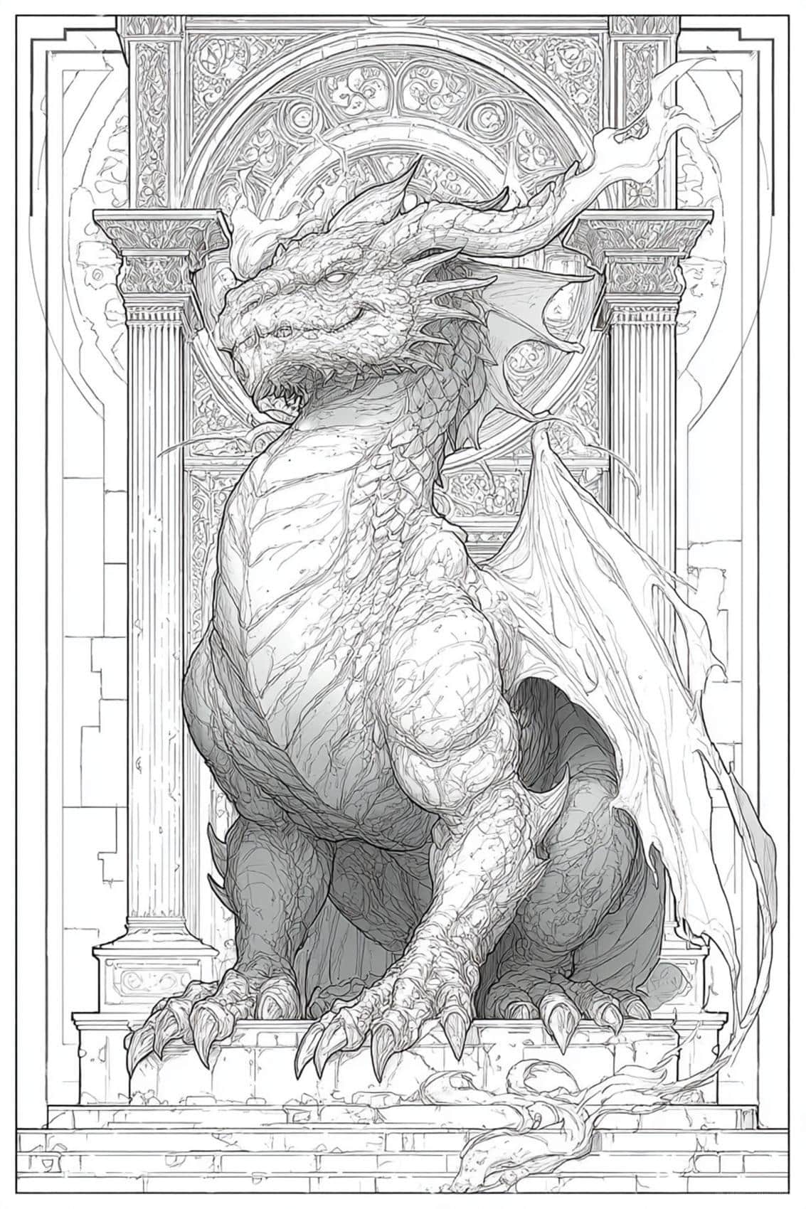 Let your imagination soar as you color elegant dragons swooping through the clouds, their wings stretched wide in the open sky. The grace and power you add to these Dragon Pencil Drawings will make each page come alive with movement and wonder.