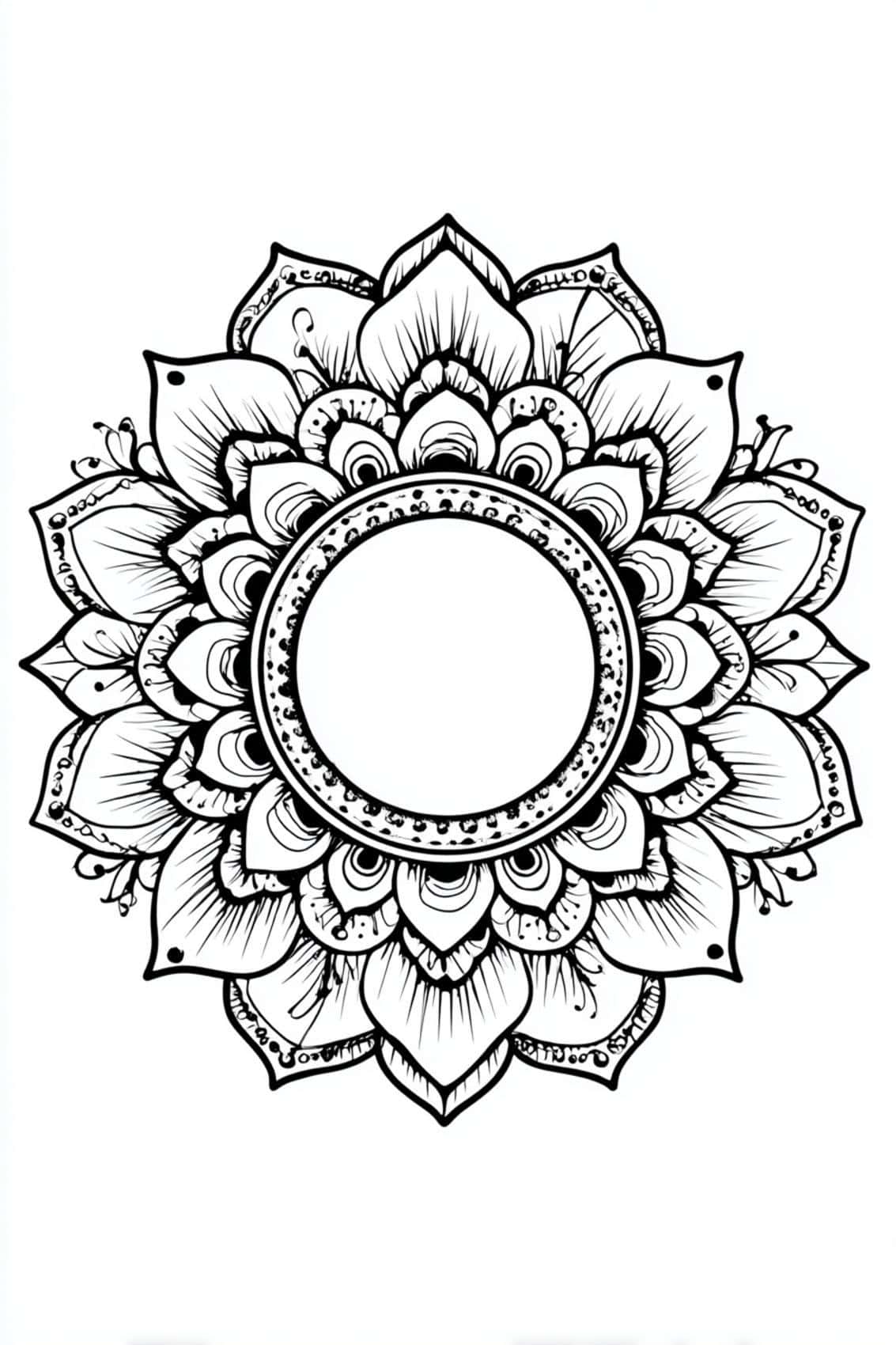 For those moments when you crave order and tranquility, this mandala of symmetrical geometric shapes is pure bliss. The balanced patterns of circles, triangles, and gentle curves offer a stress relief coloring experience perfect for quiet evenings and refocusing your mind.